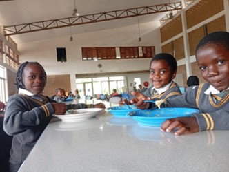 セント・キジト小学校では給食の時間に、子どもたちが栄養たっぷりのお粥を「もっと食べたい!」とおかわりする姿が見られました。