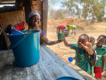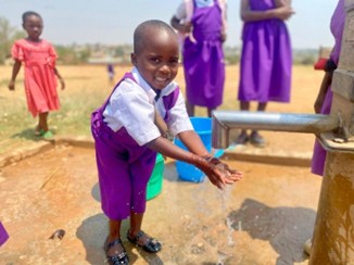 嬉しそうに手を洗うカプータ小学校の児童(2025年10月6日)