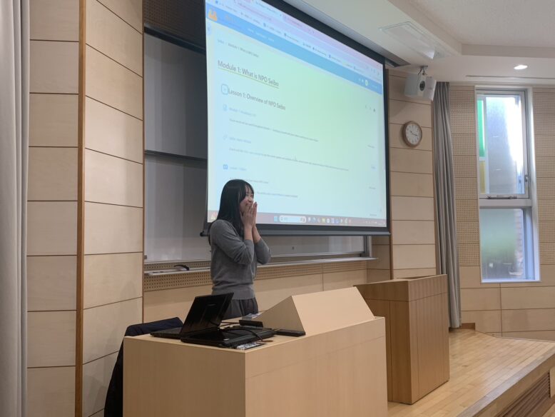 最後にですが、講義の最後にオンラインで参加し、オンデマンドでマラウイでの給食支援の意義、そのためのソーシャルビジネスとその事例、さらに実践までを学ぶことができるコースについても、担当している大学生からお話がありました。