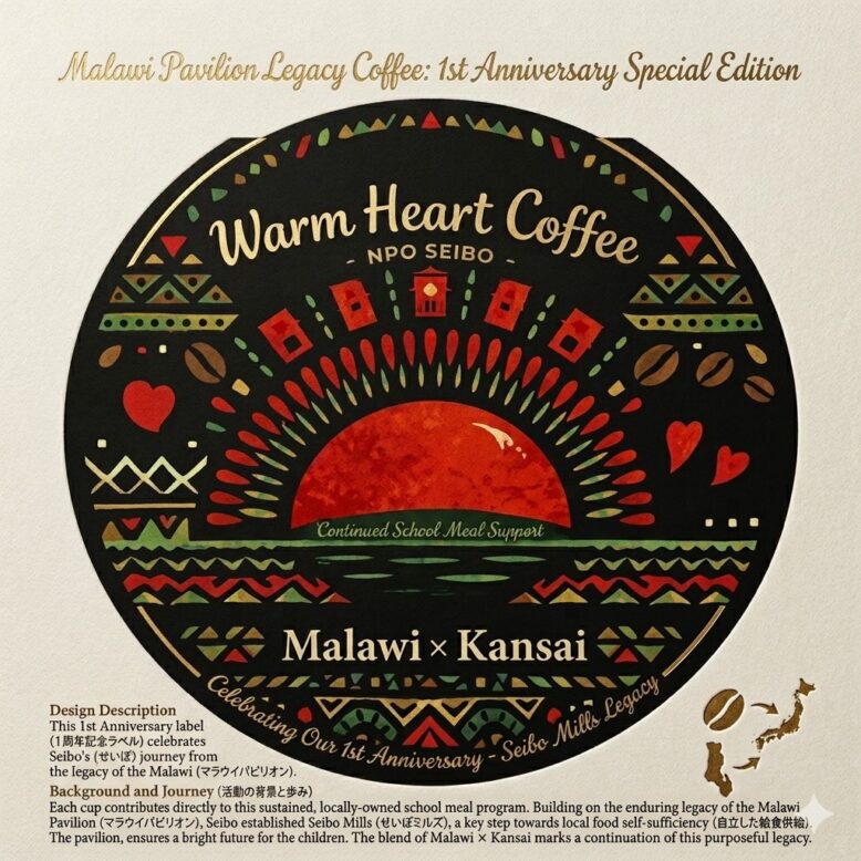 This commemorative label celebrates the dedication of Seibo’s student staff at the Malawi Pavilion and our ongoing commitment to school meal support in Malawi. It represents our hope that this legacy will continue to contribute to the growth of Malawi—known as the “Warm Heart of Africa.”