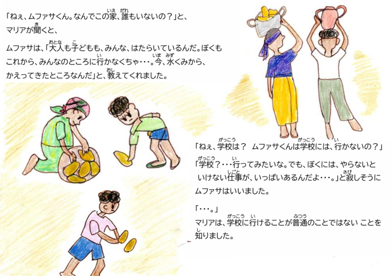 静岡サレジオ中学校の生徒様が、マラウイの貧困や労働状態の課題について、絵本にしてくれました!